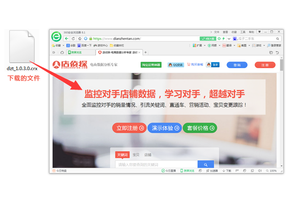 1.在谷歌瀏覽器中安裝店偵探插件,并在Chrome的擴(kuò)展器中啟動(dòng)淘寶賣家數(shù)據(jù)分析的功能