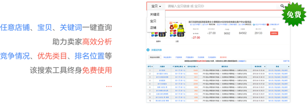各種關(guān)鍵詞、店鋪、寶貝一鍵查詢!注冊用戶終身免費(fèi)使用
