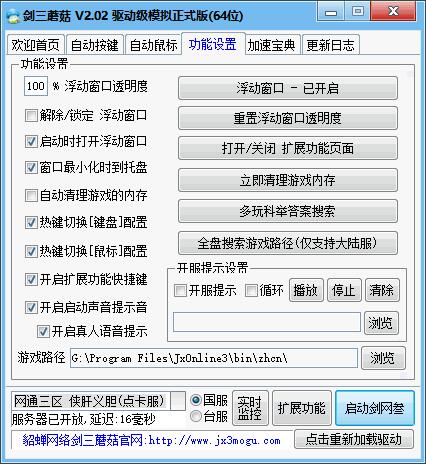 XP專用版(32位):只支持XP 32位系統(tǒng) 使用時無需手動安裝驅動,劍三蘑菇啟動時會自動釋放驅動文件,此時必須殺毒放行,否則不能加載驅動.