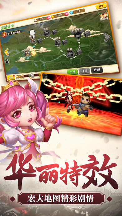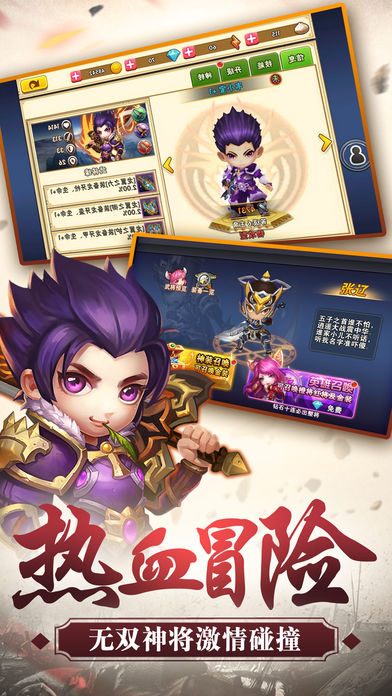 特色的將緣模式,不同的武將指尖碰撞產(chǎn)生華麗的合擊技能,絢麗的特效,超高的傷害引爆你的屏幕。