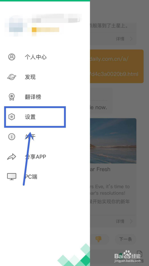 2、然后在個(gè)人列表中選擇“設(shè)置”功能,進(jìn)入設(shè)置頁面里。
