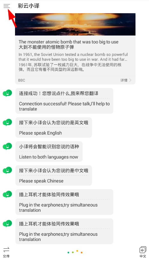1)支持同時(shí)識(shí)別中文和英文,無需按鈕2)插入耳機(jī)后支持同聲傳譯,你可以一直說話,不需要等待翻譯說完就可以繼續(xù)說