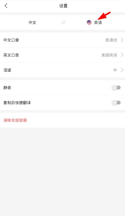 3、之后在設(shè)置頁面的第一項(xiàng)就可以通過點(diǎn)擊“英語”按鈕來將其切換為日語翻譯,非常方便!