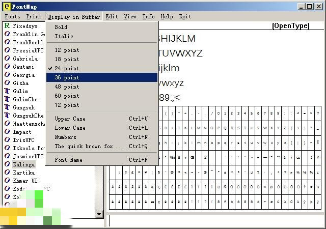 FontMap可以顯示粗體的英文樣式