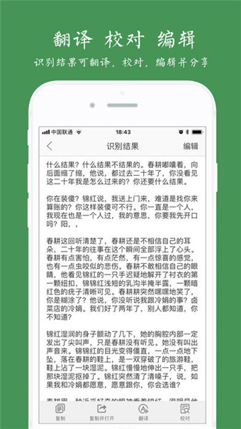 手指流暢順滑,即可分塊選擇需要的文字,想要哪段點哪段;識別結(jié)果可編輯且選擇復(fù)制到各種app中使用。