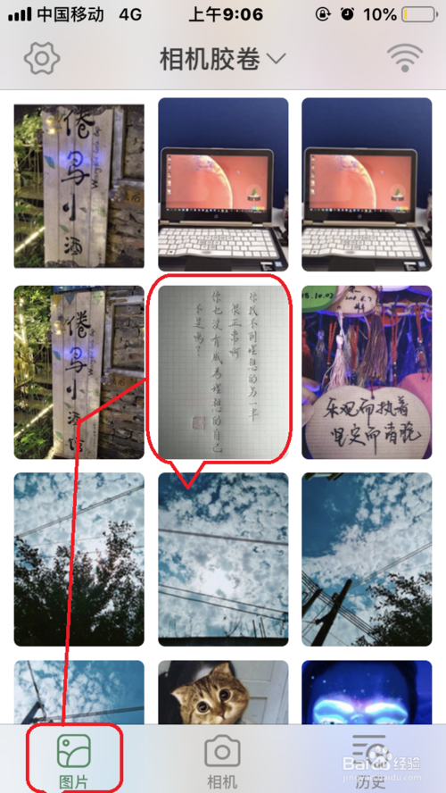 1、若是你想要使用白描,來提取圖片上的文字,就需要先點擊從自己的手機圖庫或者進(jìn)行拍照,來選擇要進(jìn)行文字提取的照片。