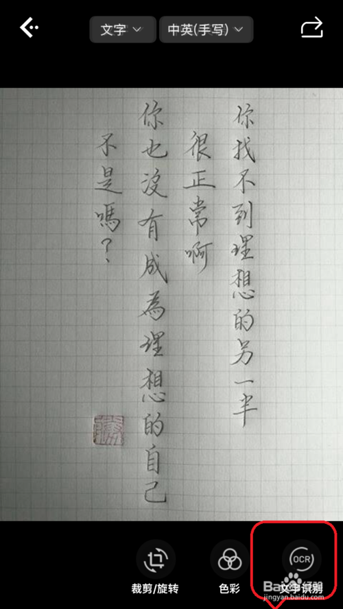 2、在選擇好自己要提取文字的圖片之后,點擊右下角的按鈕來進(jìn)行該圖片的掃描,從而識別和提取文字。