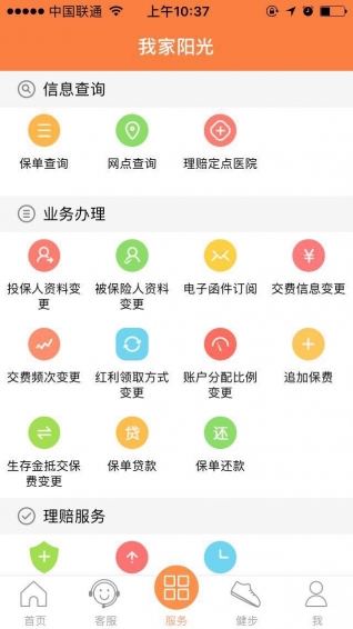 用戶一網(wǎng)通,無需新注冊,使用已有的陽光官網(wǎng)賬戶即可登錄使用APP。保單好管家,保單查詢、變更、續(xù)期交費,APP一站搞定。