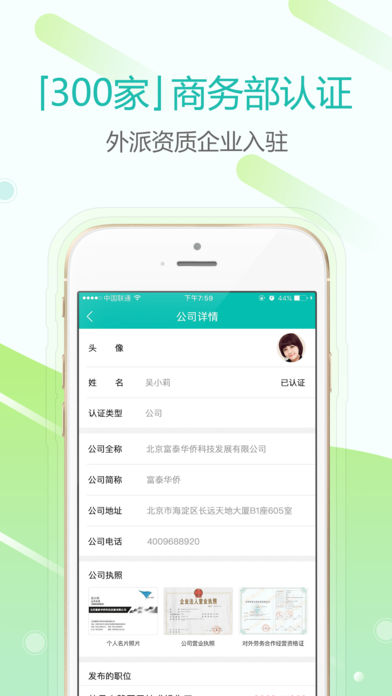 [實名認證]:名片執(zhí)照派遣資質(zhì),嚴格審核招聘信息;