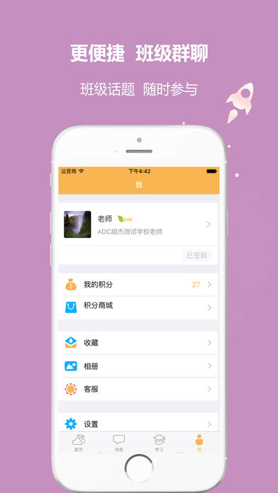 ·班級(jí)資料實(shí)時(shí)管理。免除電腦操作的煩擾,隨時(shí)隨地輕松管理,如添加、修改學(xué)生及家長(zhǎng)資料等。·家?;?dòng)核心升級(jí)??旖萃扑凸?、單聊、群聊、圖文、語音……通訊錄內(nèi)全部成員隨心對(duì)話,互動(dòng)暢聊!