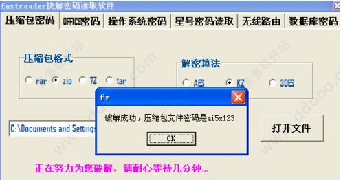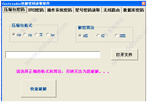 fastreader快解密碼讀取軟件是一款非常優(yōu)秀的壓縮文件密碼破解工具,fastreader中文版能夠?qū)ψ畛R姷膔ar、zip、7z等壓縮格式文件進(jìn)行密碼破解,并且不論壓縮包密碼長短,幾分鐘就可以破解一個(gè)壓縮包文件,讓你再也不用到處去問找密碼了。