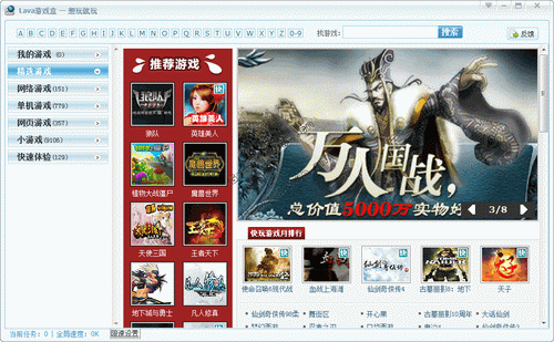 LavaGame(游戲盒子)是北京點擊科技有限公司2010年重磅推出的一款“即選即玩”游戲拼臺,內(nèi)置單機游戲、網(wǎng)絡(luò)游戲、小游戲近萬款,用戶選擇好自己喜歡的游戲后,通常只需求加載幾秒到十幾分鐘即可開始游戲?;邳c擊科技獨有的LavaNet虛擬網(wǎng)絡(luò)操作平臺,徹底顛覆了普通客戶端游戲“下載、安裝、啟動”的模式,實現(xiàn)了類似網(wǎng)頁游戲(WebGame)的“即點即玩”效果,綠色快捷,自動更新,大大降低了玩家對大型客戶端游戲下載和使用的門檻。