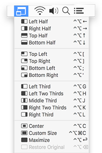 Window Manager Mac版允許您使用一系列預(yù)設(shè)選項(xiàng)通過(guò)其可自定義的快捷鍵,菜單欄下拉菜單以及將窗口拖動(dòng)到屏幕邊緣的各種熱點(diǎn),來(lái)快速重新排列Mac上的窗口。