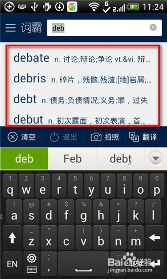 在搜索欄中逐個(gè)輸入字母時(shí),軟件會(huì)根據(jù)頭幾個(gè)輸入的字母進(jìn)行聯(lián)想,顯示出對(duì)應(yīng)的單詞列表,如果您要查詢的單詞剛好在列表中,就不用再輸入后面的字母了,這樣可以節(jié)約使用者的大量時(shí)間。