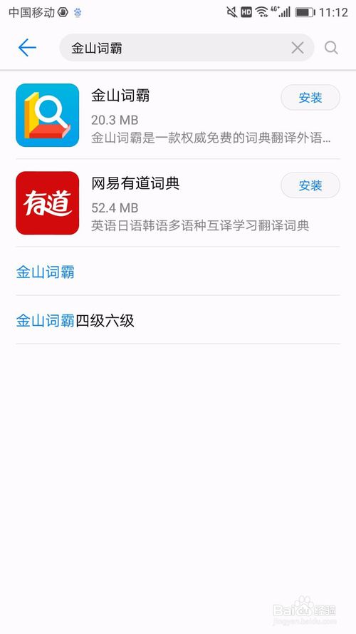 怎么聯(lián)系金山詞霸客服?1.在手機(jī)的應(yīng)用市場(chǎng)里面搜素“金山詞霸”關(guān)鍵字,如圖所示~