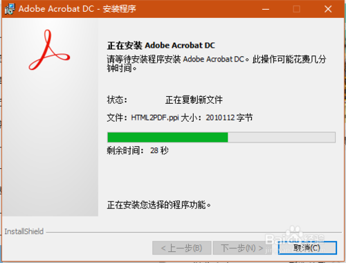 4. 進(jìn)入安裝程序,直至安裝成功。在安裝軟件的過程中,請保留安裝盤的空間大于2g,因?yàn)榘惭b的軟件包含的功能較多(包括編輯pdf、輸出圖片、OCR識別等功能)
