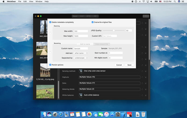 MetaGear Mac版按所選時間間隔移動創(chuàng)建所有照片的日期,創(chuàng)建進一步應(yīng)用的元數(shù)據(jù)更改預(yù)設(shè)。完全刪除元數(shù)據(jù),支持設(shè)置自定義輸出圖像大小,為已處理的圖像設(shè)置命名。