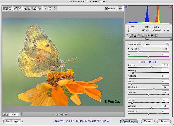 2、在 Camera Raw 中打開圖像文件。