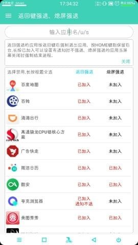 2、返回強(qiáng)退、關(guān)屏強(qiáng)退。(類(lèi)似黑域或阻止運(yùn)行)該功能需要root并保持后臺(tái)。