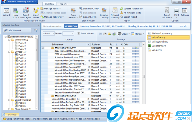 Network Inventory Advisor是一款專業(yè)的網(wǎng)絡庫存軟件,可在所有的網(wǎng)絡設備上自動收集全部相關的數(shù)據(jù)并獲取詳細的OS和設備統(tǒng)計資料。添加自定義數(shù)據(jù),如服務標簽,庫存編號,成本,定位,甚至創(chuàng)建定制節(jié)點。在您的網(wǎng)絡中追蹤重要的變動【軟件特點】