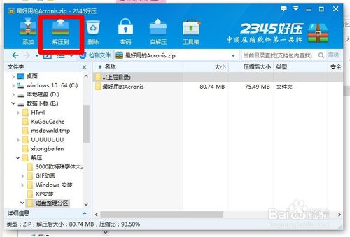 3.在解壓窗口中單擊“解壓到”按鈕