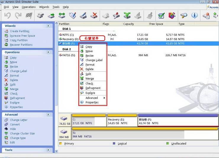 1、為什么一定要用Acronis Disk Director Suite?——因為Acronis Disk Director Suite是目前唯一的一款完美支持vista的Windows下的無損分區(qū)軟件