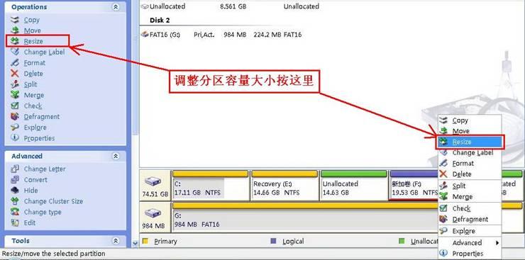 可以輕松的完成對磁盤大小的改變