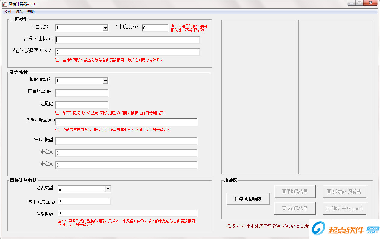 雙擊“風振計算器v110.exe”,運行;有3個例子,可通過菜單【文件】—>【導入數據】將1個數據文件導入;