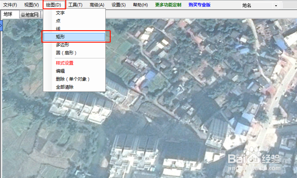 打開“谷歌地球”,在谷歌地球上找到你要下載的圖紙范圍,在工具欄中“繪圖”--“矩形”