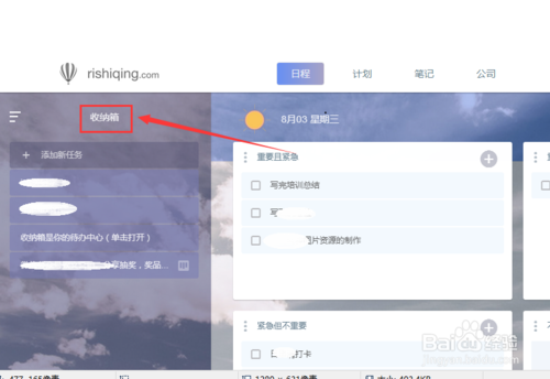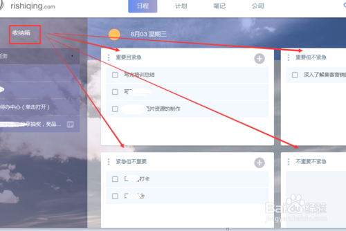 在四象限表格的左側是收納箱,將當天的工作計劃添加到收納箱中。