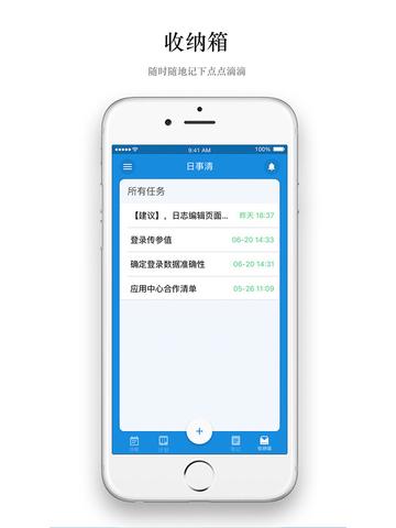 收納箱:事務太多太費腦?備忘錄不好用?清空大腦只需一步:將所有事項、任務全部放入日事清收納箱,解放大腦,讓其快速思考。