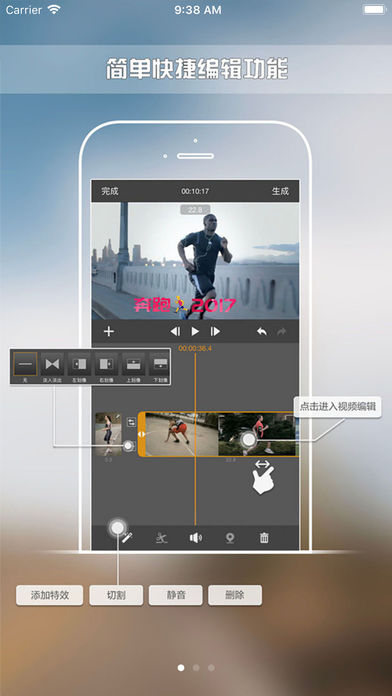專業(yè)級視頻剪輯:提供視頻拍攝、手機(jī)視頻的直接剪輯,支持幀精確的片段Trim修葺、過渡轉(zhuǎn)場,應(yīng)用內(nèi)預(yù)制了數(shù)十種免費(fèi)的實(shí)用風(fēng)格特效與轉(zhuǎn)場動畫。