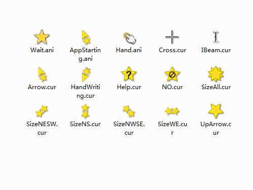 stars-gold-set鼠標指針是包含15個基本指針的鼠標指針文件,風(fēng)格華麗,制作精美,星星造型十分可愛,可用于搭配多種主題。