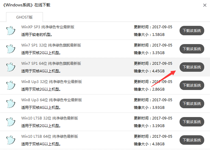 當(dāng)我們來(lái)到這里可以看到這里提供了微軟官方原版和GHOST版,至于你要什么版本你可以自己選擇,我這里是GHOST版WIn7系統(tǒng),點(diǎn)擊安裝。