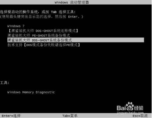 黑鯊添加了DOS和PE系統(tǒng)備份模式,重啟可以選擇其中一種進(jìn)行系統(tǒng)的備份。