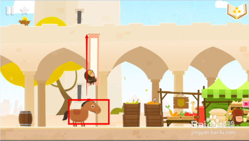 那個(gè)問(wèn)號(hào)是什么呢?就是那個(gè)牛奶旁邊那個(gè)人,等他走開(kāi)喝牛奶的時(shí)候會(huì)有個(gè)古箏點(diǎn)擊一下他就掉下來(lái),你再爬上去點(diǎn)擊就OK了