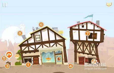 偷走了蛋糕,你會(huì)來(lái)到屋頂,這個(gè)階段,小白鼬會(huì)出現(xiàn)在蛋糕店的櫥窗里,點(diǎn)走它;撿走屋頂上的風(fēng)車(chē),然后點(diǎn)掉廚師屋頂上的煙囪,從黃色屋頂?shù)挠覀?cè)下到地面;