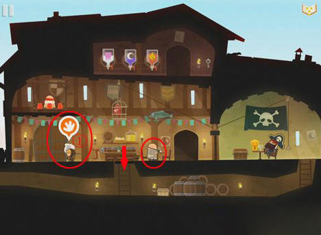 ①注意酒保,等他轉(zhuǎn)身之后拿起桌上的酒壺,然后在下去地下室。