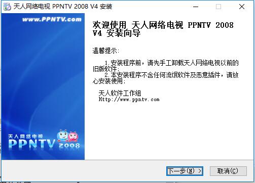 從起點(diǎn)軟件園下載天人網(wǎng)絡(luò)電視軟件包,解壓縮后,雙擊打開安裝程序,點(diǎn)擊下一步