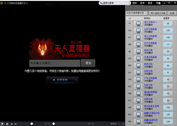 天人網(wǎng)絡(luò)電視全面支持電信、網(wǎng)通、鐵通、教育網(wǎng)等各種網(wǎng)絡(luò)用戶!只要你可以上網(wǎng),打開天人網(wǎng)絡(luò)電視。支持多達(dá)12種P2P網(wǎng)絡(luò)電視解碼與播放