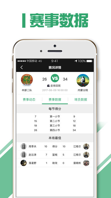 賽事數(shù)據(jù):提供數(shù)據(jù)查看、數(shù)據(jù)排行、本場(chǎng)最佳分析,給予球員球星體驗(yàn);