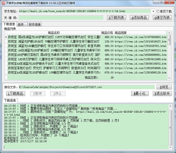 支持下載京東店鋪所有商品、分類、搜索,店鋪分類自動(dòng)檢測(cè)地址功能;