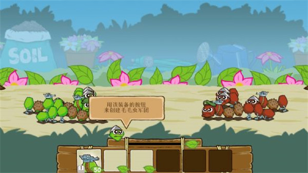 激戰(zhàn)毛毛蟲軍團是一款比較休閑的游戲,在這款游戲中玩家只需要組合不同的毛毛蟲來攻破對方的地盤就行了,無論是玩法還是操作都非常簡單,很適合休閑娛樂,推薦玩家們下載。【游戲特色】