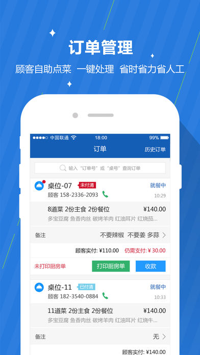 菜品類別、圖片、介紹及價格一目了然,店內(nèi)店外,隨時隨地自由查看。
