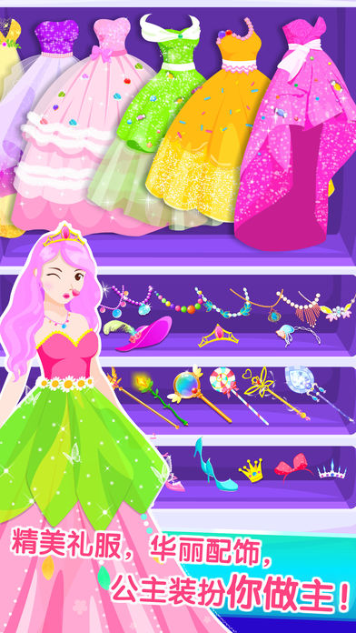 海量精美的公主服裝、飾品,讓孩子在動手裝扮,體驗換裝樂趣。