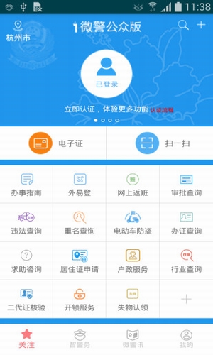 i微警公眾版該客戶端包括主要包括辦事服務(wù)、查詢服務(wù)、地圖應(yīng)用、警務(wù)資訊、安全防范、求助咨詢、違法舉報(bào)、公安微博等功能模塊。通過個(gè)性化定制及時(shí)為您提供出入境預(yù)約等貼心服務(wù),實(shí)現(xiàn)出交通違法查詢、戶口遷移審批進(jìn)度查詢、二代身份證辦理查詢、重名查詢、行業(yè)查詢等查詢提醒,求助咨詢和違法舉報(bào)等警民互動(dòng)功能以及警務(wù)資訊、安全防范等資訊類服務(wù)。
