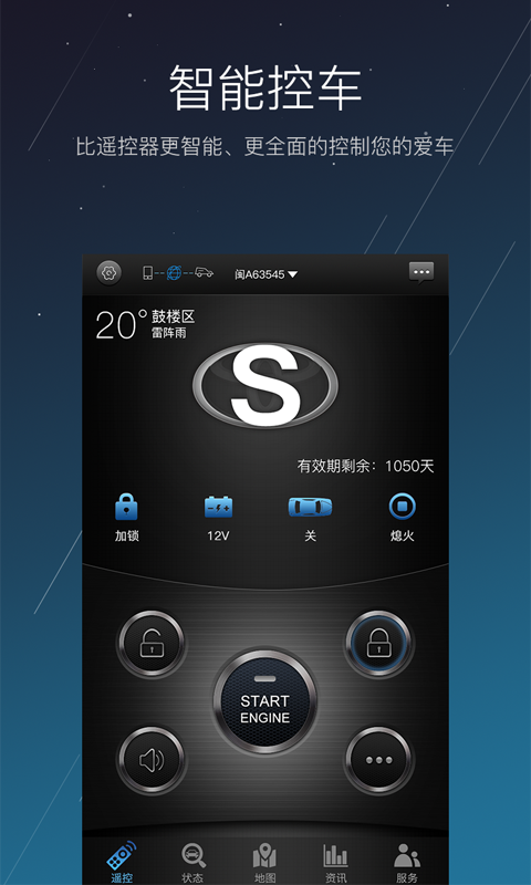 云控:開(kāi)鎖、關(guān)鎖、啟動(dòng)、熄火、尋車、開(kāi)啟后備箱(不限距離);掌控:各種狀態(tài)(電瓶電量、防盜狀態(tài)、車門(mén)狀態(tài)、啟動(dòng)熄火等);