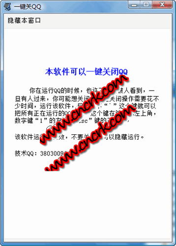 你在運行QQ的時候,也許不希望被人看到,一旦有人過來,你可能想關(guān)閉QQ,但關(guān)閉操作需要花不少時間,運行該軟件,只要按下“`”這個鍵就可以把所有運的QQ關(guān)閉,這個鍵在鍵盤的左上角,數(shù)字鍵“1”的左邊,“Esc”鍵的正下方