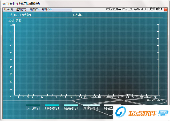 3、軟件分為入門練習(xí)、中等練習(xí)、高級練習(xí)、專家練習(xí)、小鍵盤、成績單等功能界面,用戶可以根據(jù)自己的需求選擇練習(xí)難度。