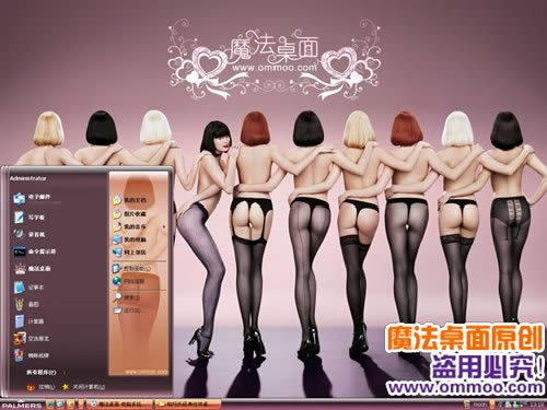 魔法桌面原創(chuàng)xp、vista、windows7通用版主題,此主題采用暗紫與肉色,烘托了Palmers經(jīng)典絲襪廣告的絕妙創(chuàng)意,主題用隱約可見的網(wǎng)紋,表達Palmers絲襪的柔軟超薄的材質(zhì),也凸顯了Palmers廣告的唯美